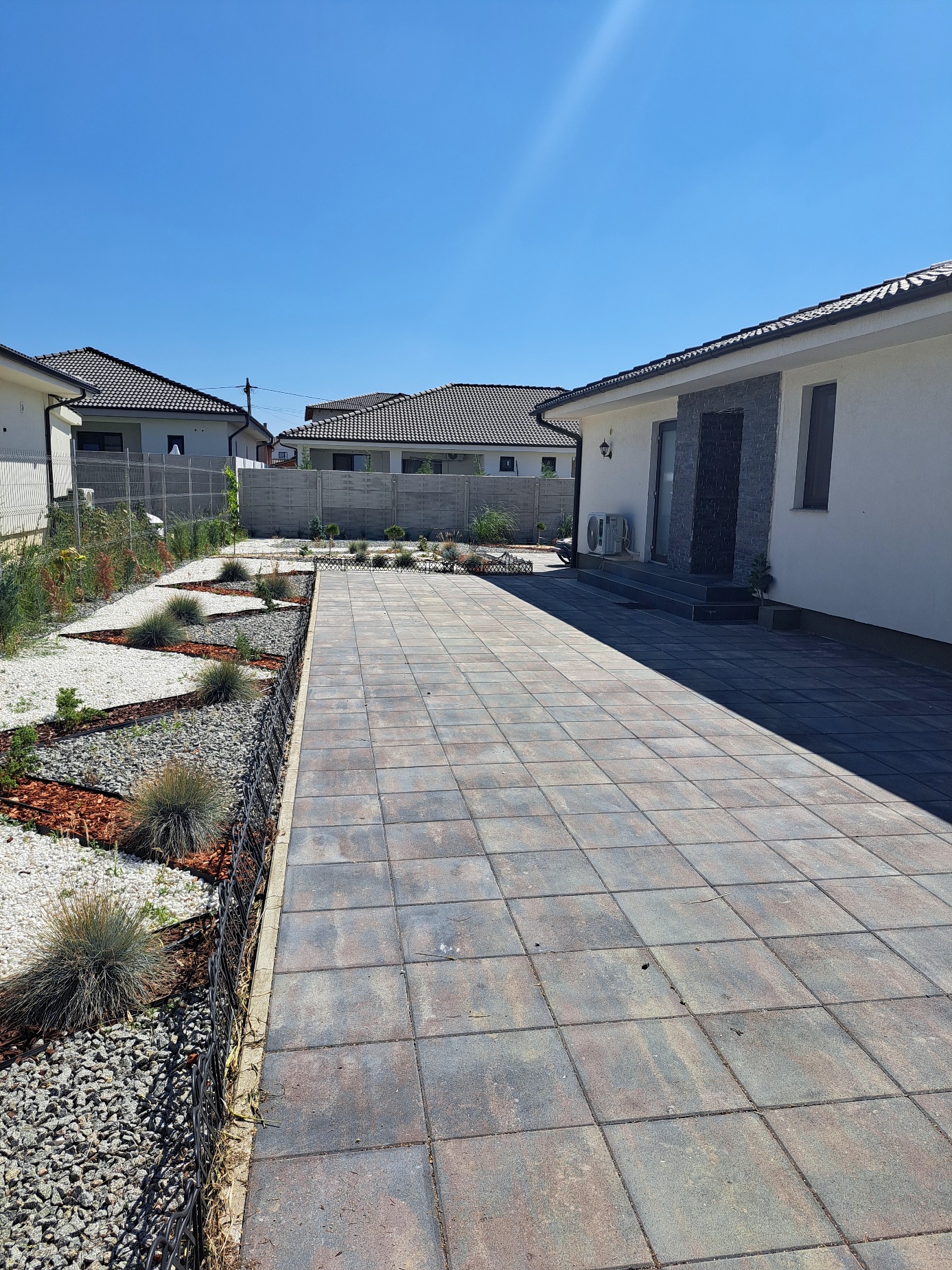 Alte detalii: Casă pe un nivel, READY TO MOVE, situată īn cartier nou de case īn comuna Nojorid, la 7km de Oradea. Se compune din: hol, living generos cu ieșire pe terasă, bucătărie, 2 dormitoare, 2 băi, dressing, cămară de alimente, cameră tehnică, pod, terasă acoperită. Curtea este amenajată, avānd și sistem propriu de irigare. Există acces auto pentru 2 mașini Poartă automatizată Īncălzirea este in pardoseală cu pompă de căldură Aer condiționat Gazul este la poartă Suprafața terenului este de 516mp Suprafața construită desfăsurată este de 138mp Suprafața utilă este de 110mp Amenajată cu bun gust, casa se vinde mobilată complet și utilată parțial. Mai multe fotografii la cerere.